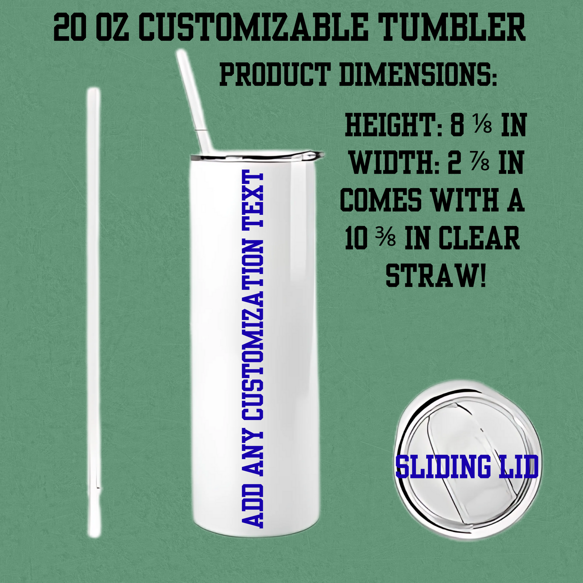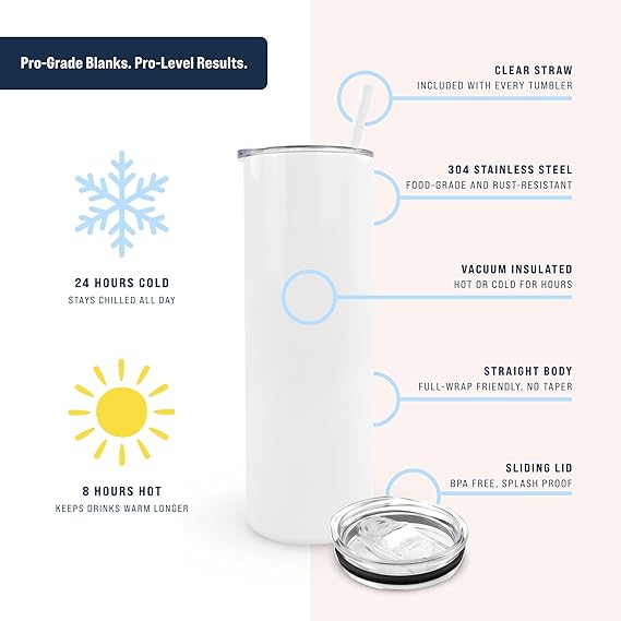 Each tumbler is custom made to order and professionally sublimated for a smooth, permanent design. The image is infused directly into the tumbler, meaning there is no vinyl, no decals, and no peeling or cracking.